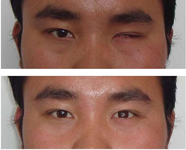 3. 上眶區(qū)凹陷和上瞼下垂:由于重力的作用,眼眶內(nèi)的軟組織和眼座會逐漸向下移位,造成眼眶上方凹陷以及繼發(fā)性的上瞼下垂,影響美觀。這種情況可通過更換義眼片,或整復(fù)手術(shù)進(jìn)行矯治。