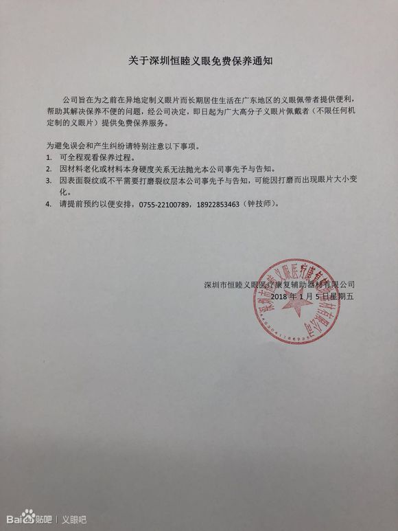 關(guān)于深圳恒睦義眼免費(fèi)保養(yǎng)的通知: